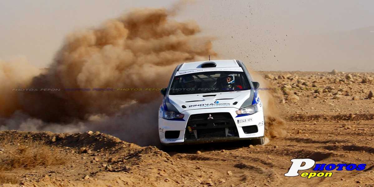 Rescatamos varias instantáneas realizadas por parte de PHOTOS PEPON de la primera toma de contacto en tierras majoreras del flamante Mitsubishi Lancer Evo X R4 del piloto majorero Borja Pérez. Se trata de otra montura que se suma a los podiun de los rallyes en tierra.