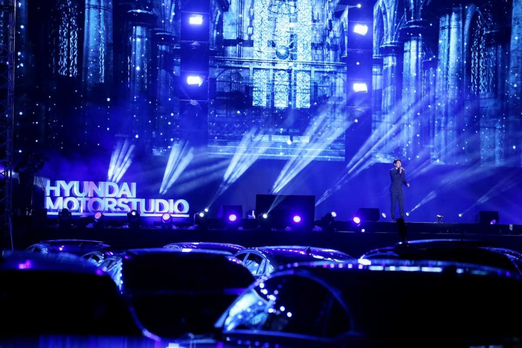 El pasado fin de semana, la compañía organizó el evento «Stage X Drive-in Concert» en los alrededores de Hyundai Motorstudio Goyang, situado a las afueras de Seúl. Con 300 coches al día, el evento de tres días permitió a más de 1.000 personas disfrutar de actuaciones de música en directo, estacionados en sus coches para así respetar la distancia social. Se tomaron cuidadosas medidas de seguridad de acuerdo con las directrices del gobierno.