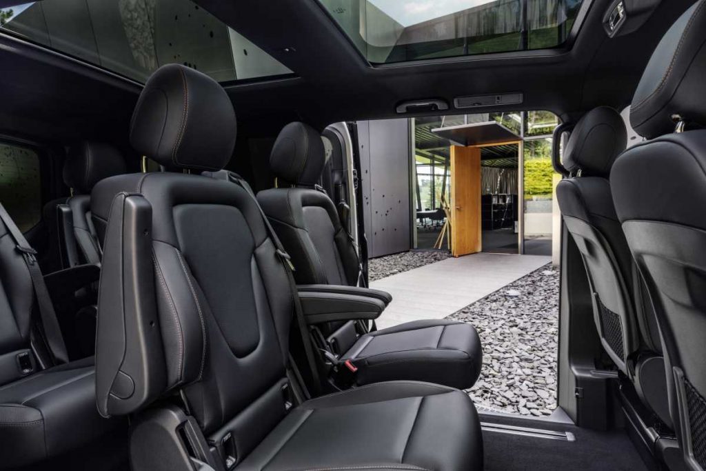 La instalación de la batería en el espacio debajo del piso garantiza el mayor espacio posible dentro del habitáculo ofreciendo la misma habitabilidad y funcionalidad que el Clase V. La flexible instalación de asientos individuales o de bancos corridos también permiten que el EQV se convierta en un vehículo de seis, siete o incluso ocho plazas.