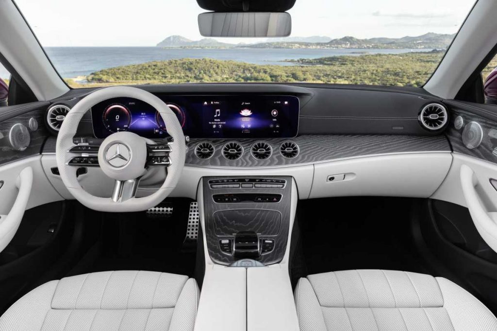 En el marco de las medidas de actualización se han reforzado los aspectos sugestivos del diseño de ambos modelos de ensueño. La Clase E Cabrio con capota clásica de lona brinda una generosa habitabilidad para un máximo de cuatro personas, que pueden disfrutar de un confort elevado en largos recorridos durante todo el año. Si el cliente lo desea, puede equipar su cabrio con el sistema de paravientos con accionamiento eléctrico AIRCAP y la calefacción del espacio de la cabeza AIRSCARF. También contribuye a la idoneidad sin restricciones para todas las estaciones del año la capota insonorizante incorporada de serie, que asegura un confort acústico ideal en el habitáculo. Su estructura, formada por varias capas con sofisticado aislamiento térmico, mejora al mismo tiempo el confort climático con independencia del clima en el exterior y reduce el ruido aerodinámico y el ruido de marcha. De esa manera hace posible mantener una conversación relajada a bordo del vehículo, incluso a altas velocidades. Con su expresiva silueta de coupé, un diseño claro y sensual y un elevado confort para sus cuatro ocupantes, la Clase E Coupé combina la belleza y las virtudes clásicas de un Gran Turismo con tecnología ultramoderna.