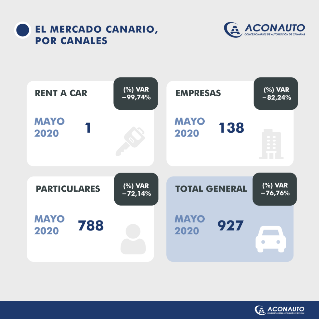 La venta de turismos y todoterrenos en Canarias durante el mes de mayo cayó un 76,8% con respecto al mismo mes de 2019, con solo 927 coches vendidos en los últimos 31 días. El descenso más significativo se sigue registrando en el canal de rent a car, con un 99,7% menos debido a la inactividad del sector turístico. En el último mes las alquiladoras solo han comprado una unidad. Las matriculaciones en coches de empresas y de particulares bajan un 82,2% y un 72,1% respectivamente.
