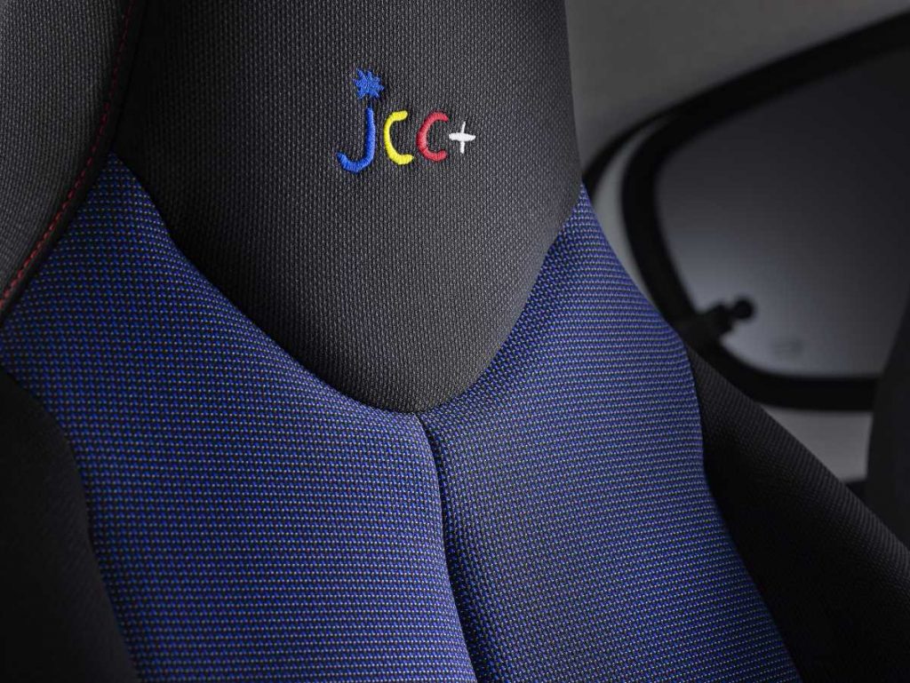 Encontramos el logotipo «JCC+» bordado con delicadeza en los reposacabezas de los asientos delanteros y en las alfombras específicas delanteras