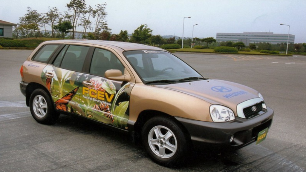 A principios del milenio, las preocupaciones medioambientales habían entrado en la tendencia general. Hyundai había comenzado a desarrollar vehículos de pila de combustible en 1998, y en 2000 presentó su primer prototipo, el concepto de Santa Fe FCEV. El primer FCEV con un depósito de hidrógeno de 350 bares, estaba equipado con una pila de combustible de 75 kW y ofrecía una autonomía de 230 kilómetros. Aunque estas estadísticas eran impresionantes para la época, mostraban que, en combinación con la falta de infraestructura para los automóviles de hidrógeno, la producción en masa de vehículos de pila de combustible no era viable en ese momento.