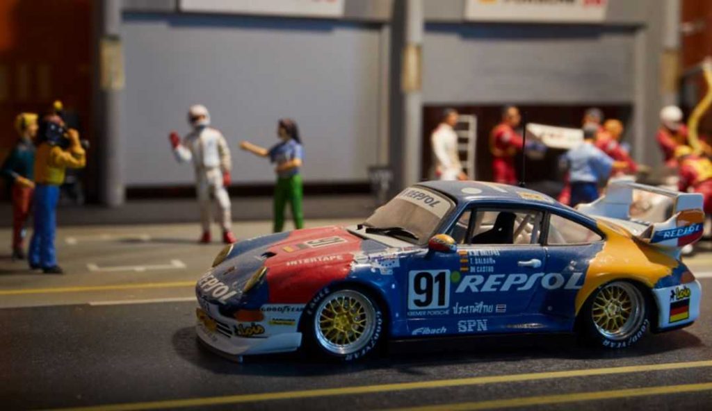 Muchas de esas maquetas son dioramas, en los que el coche va acompañado de personajes, accesorios y un entorno apropiado que recrea el ambiente con total realismo.