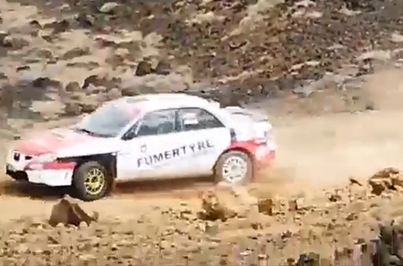 El piloto tinerfeño Gustavo Fumero ha colgado en sus redes un vídeo donde rueda con su Subaru Impreza STi N12 en la isla de Lanzarote.