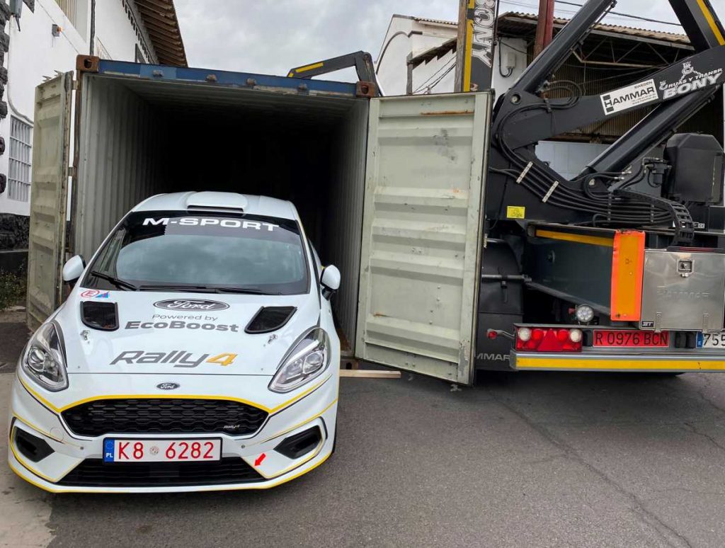 La primera unidad, recién llegada desde Polonia, de este derivado del Ford Fiesta St Line de 1.000cc que participará en las próximas temporadas de Rallyes en Canarias 👉¡Ven a verlo a nuestra exposición del Mayorazgo!