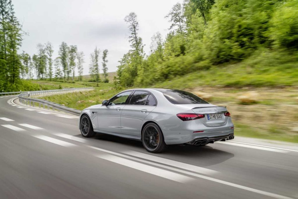 Todas las variantes del E 63 están equipadas de serie con la tracción integral AMG Performance 4MATIC+. Este sistema inteligente conjuga las ventajas de distintos conceptos de propulsión. La distribución totalmente variable del par entre el eje delantero y el eje trasero, una novedad en este segmento, garantiza una tracción ideal sobre cualquier terreno, lo que se traduce en una elevada seguridad de marcha. Un acoplamiento con regulación electromecánica conecta de forma variable el eje trasero, propulsado en todo momento, con el eje delantero. Un procesador calcula permanentemente la distribución óptima del par motor. De ese modo es posible conducir el modelo de altas prestaciones en un rango variable y progresivo, desde la tracción integral para asegurar máximo agarre al firme hasta una tracción exclusivamente trasera. Además de la adherencia al piso y el dinamismo transversal, la tracción integral mejora también el dinamismo longitudinal y permite una aceleración más briosa.