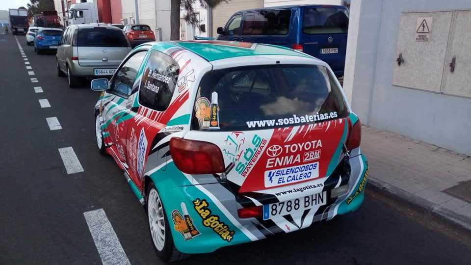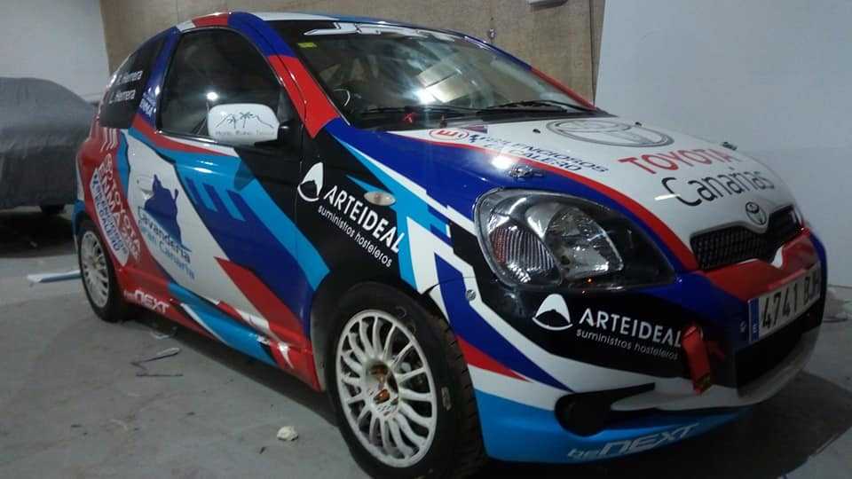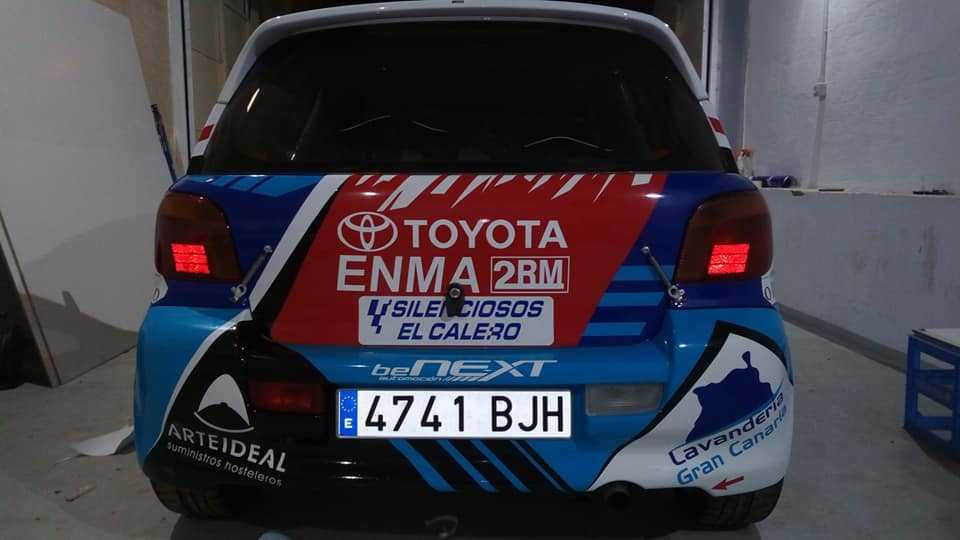 El piloto grancanario Acorán Navarro, el que fuera ganador de la Copa Toyota Emma a los mandos de su Toyota Yaris TS, unidad con la que le volveremos a ver en el Rally Villa de Santa Brígida, es también conocido en Gran Canaria por sus trabajos de rotulación.