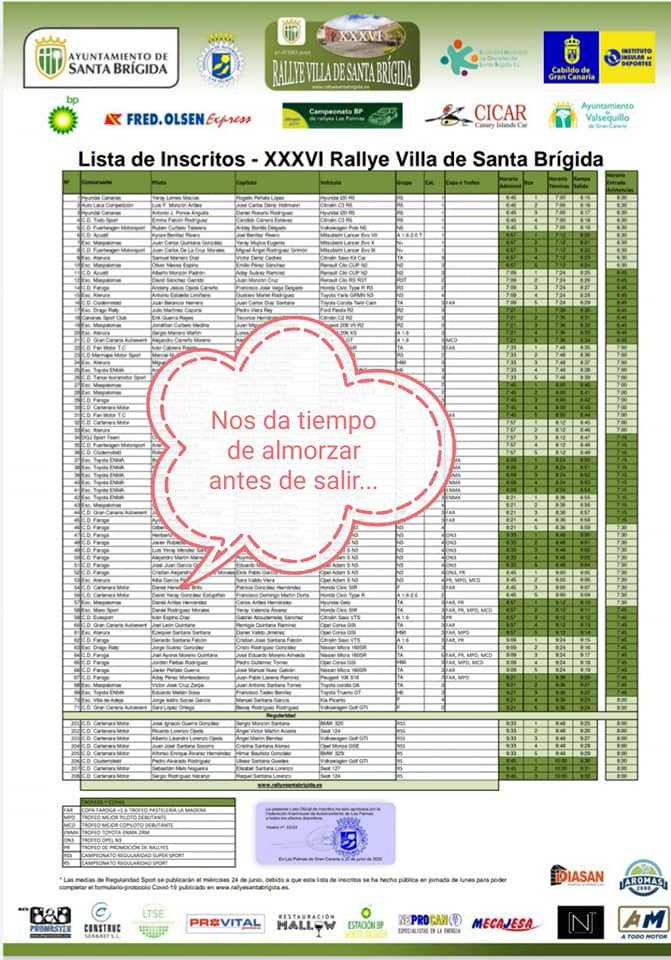 Eso sí, en toni irónico, cree que con el número que le han dado le da tiempo de comer antes de salir… Esperemos que le marchen bien las cosas en el asfalta isleño.