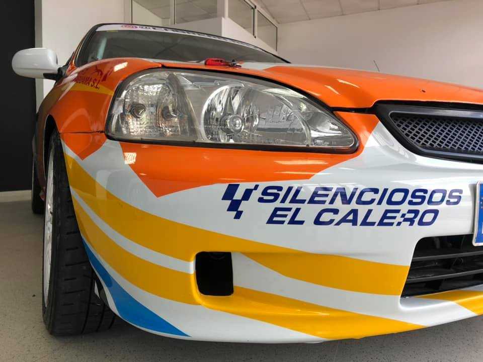 Aquí está nuestro pequeño Civic vestido de gala con nuestros patrocinadores.