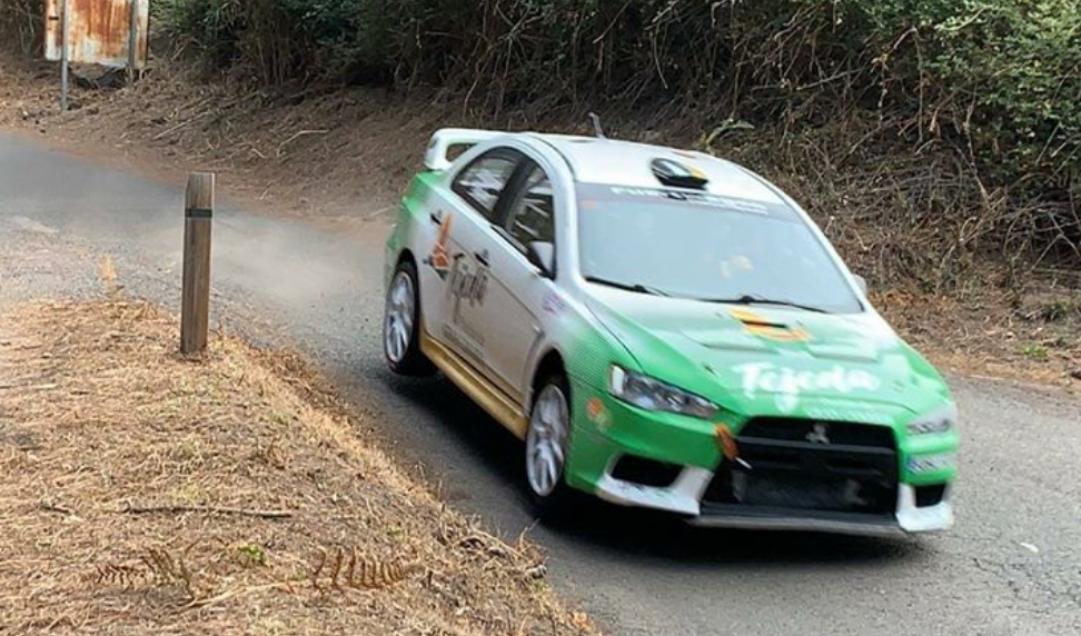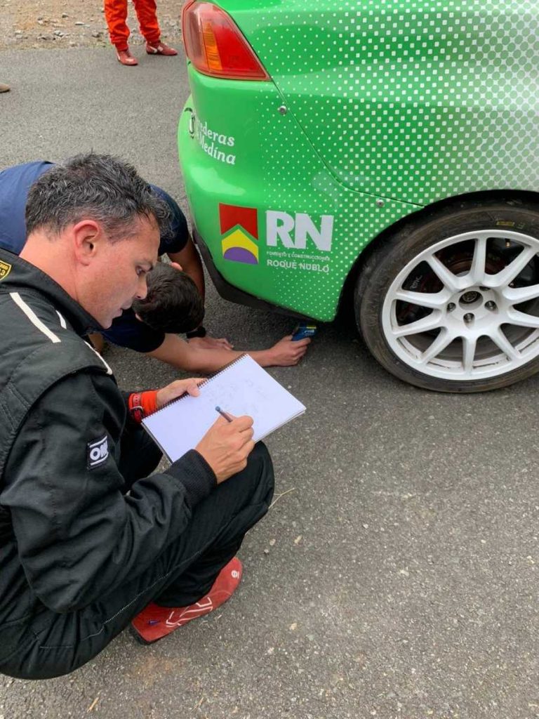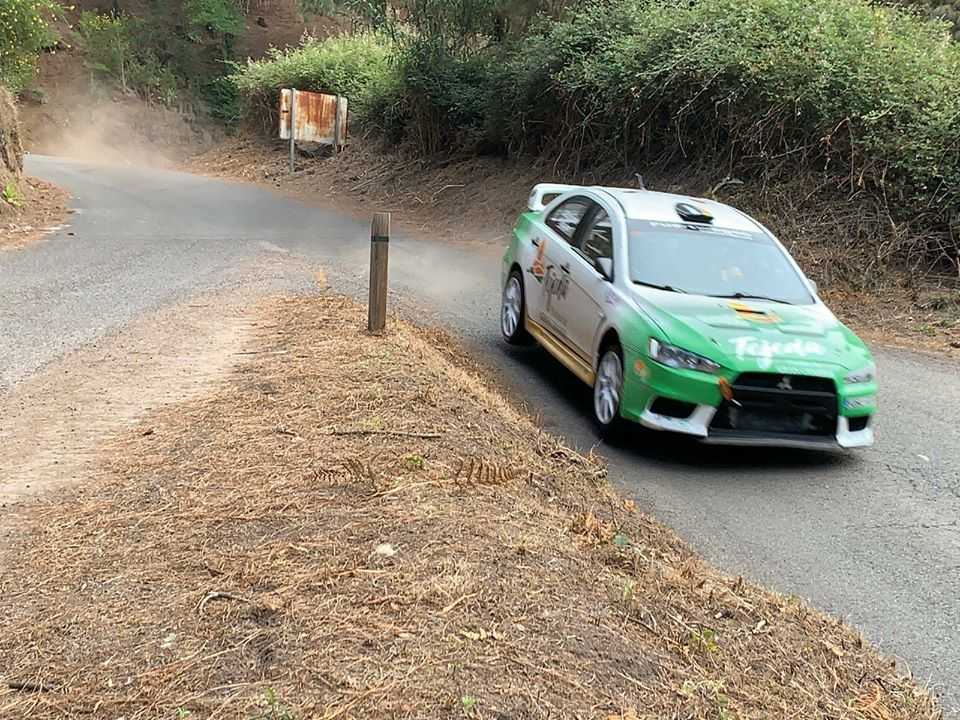 El equipo grancanario compuesto por Juan Carlos Quinta y Yeray Mujica probaron los nuevos neumáticos MRF en el Mitsubishi Lancer Evo X con el que correrá este sábado en el Rally Vills de Santa Brígida.