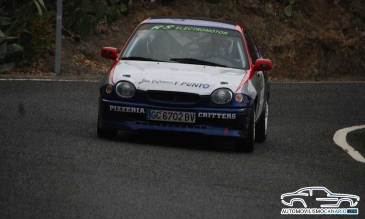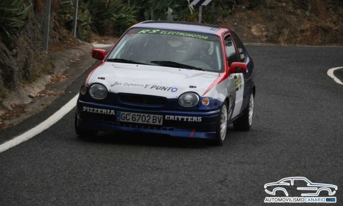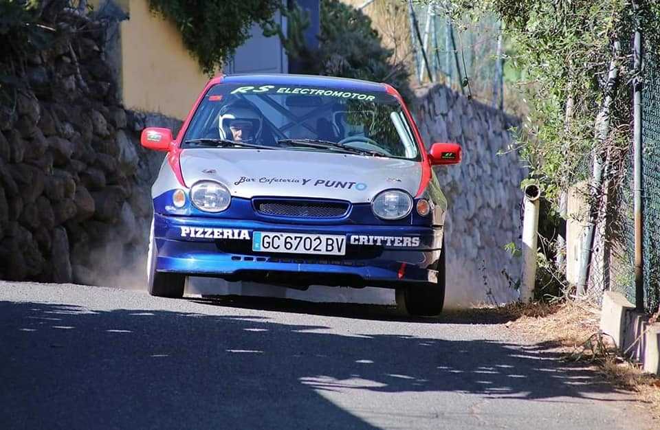 El joven Aythami Sánchez debutaba en la competición junto a su padrino Roberto Sánchez, que estaba igual de ilusionado de verlo a la derecha de su Toyota Corolla 20V en el Rally Villa de Santa Brígida.
