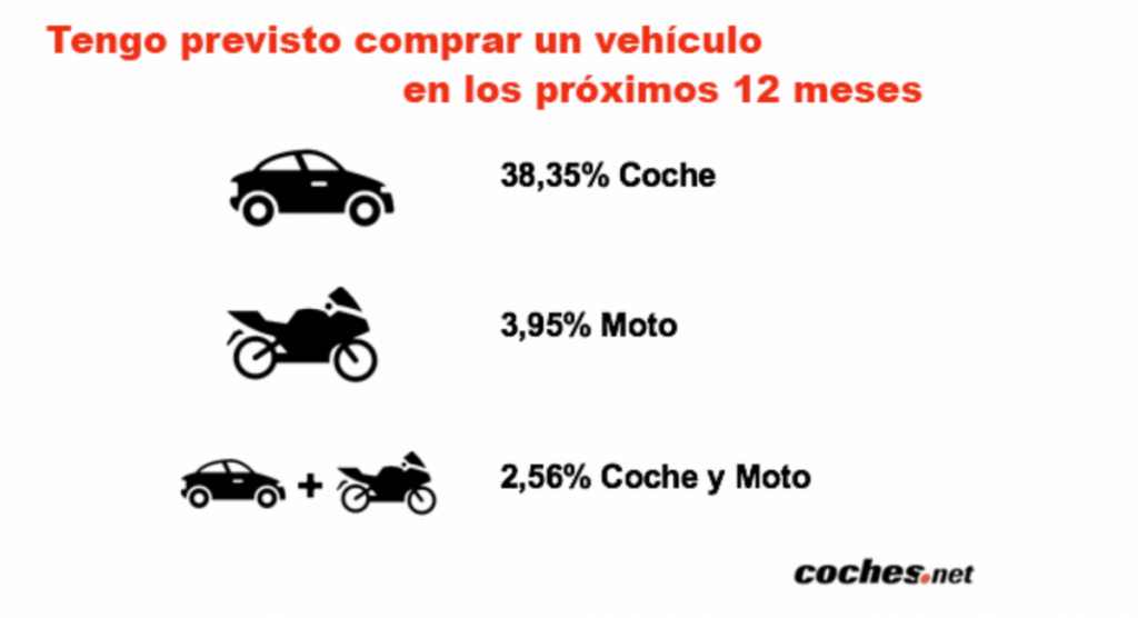 El Estudio de Intención de compra de un vehículo 2020, realizado por coches.net, portal de motor líder en España concluye que el 45% de los encuestados tienen intención de comprar un vehículo en los próximos 12 meses. Entre estos, un 38% apuesta por un coche, un 4% compraría una moto y casi un 3% ambos vehículos. El objetivo de este estudio, el primero coincidiendo con las primeras fases de desescalada, y que ha contado con una muestra de 4.300 personas, es hacer una radiografía de cuál es la tendencia de los españoles a la hora de comprar un vehículo: preferencias, motivos, presupuesto, necesidades, así como conocer dónde y cómo lo adquiere, entre otros.
