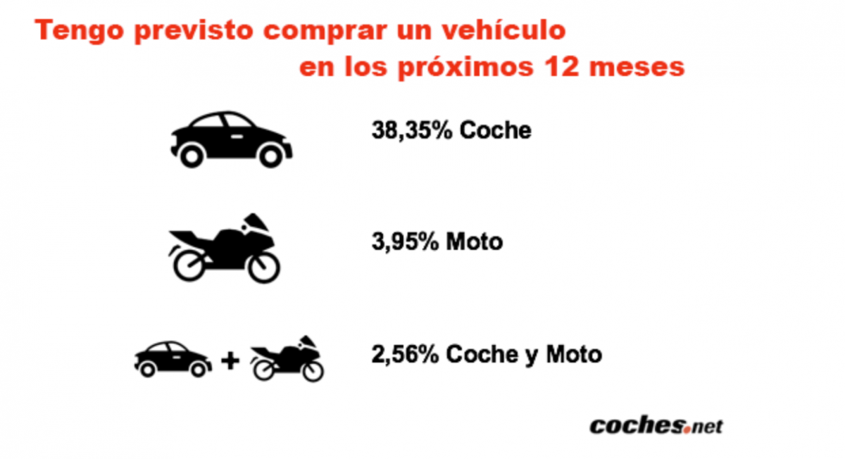 El Estudio de Intención de compra de un vehículo 2020, realizado por coches.net, portal de motor líder en España concluye que el 45% de los encuestados tienen intención de comprar un vehículo en los próximos 12 meses. Entre estos, un 38% apuesta por un coche, un 4% compraría una moto y casi un 3% ambos vehículos. El objetivo de este estudio, el primero coincidiendo con las primeras fases de desescalada, y que ha contado con una muestra de 4.300 personas, es hacer una radiografía de cuál es la tendencia de los españoles a la hora de comprar un vehículo: preferencias, motivos, presupuesto, necesidades, así como conocer dónde y cómo lo adquiere, entre otros.