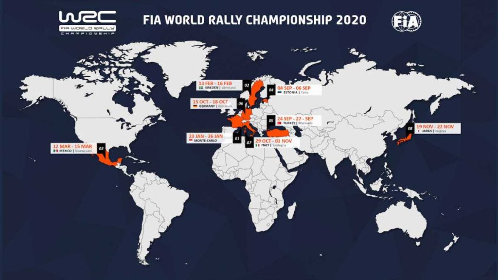 La cita de Estonia de tierra precede a los rallyes programados en Turquía (24 – 27 de septiembre) y Alemania (15 – 18 de octubre) en el nuevo calendario. El siguiente es Italia, antes del regreso de Japón (19 a 22 de noviembre), cuya fecha tampoco ha cambiado.