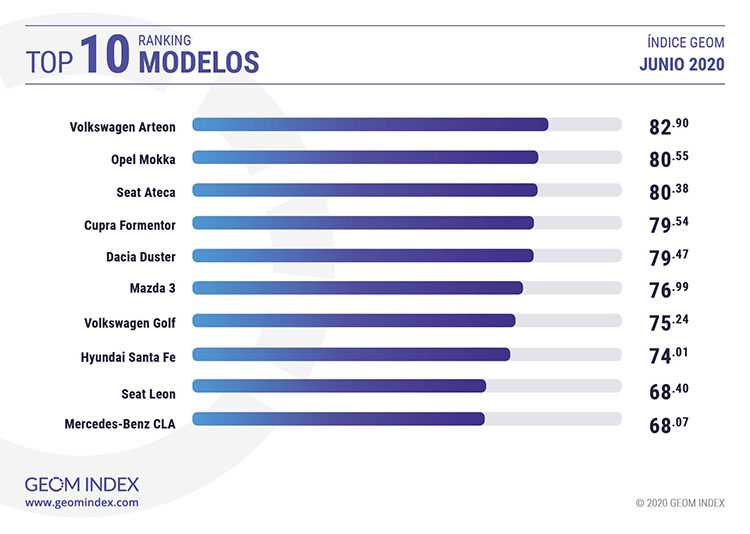 -El Arteon se impone con su renovado diseño y nuevas variantes, mientras que el Opel Mokka y el Seat Ateca completan las posiciones de honor del GEOM Index.
