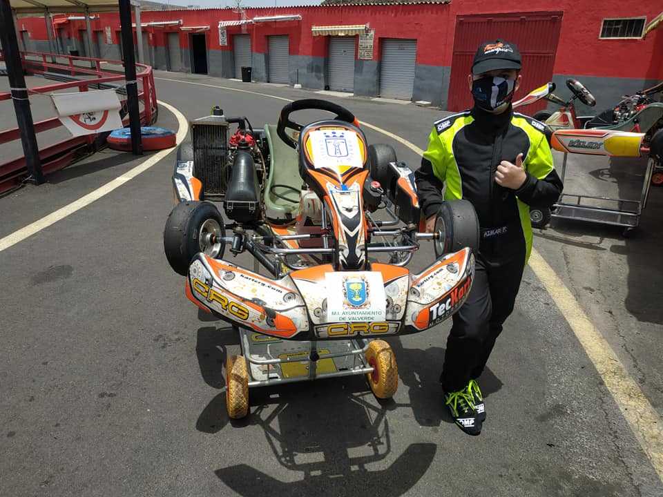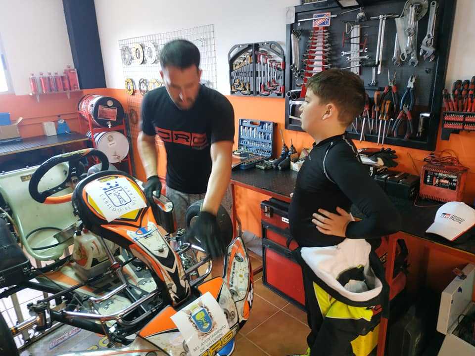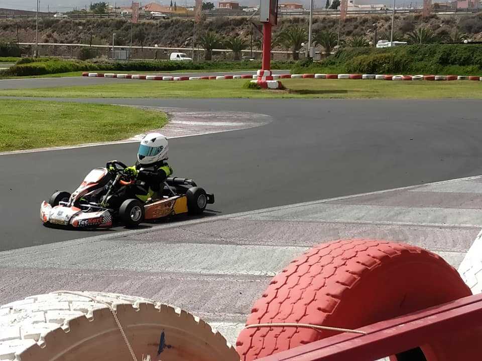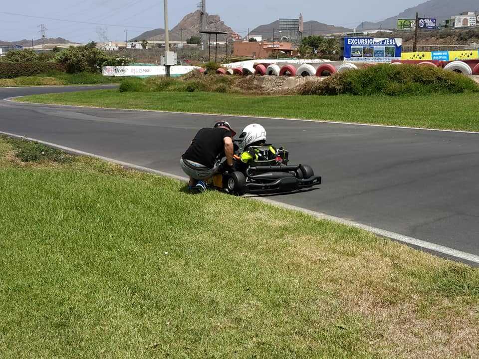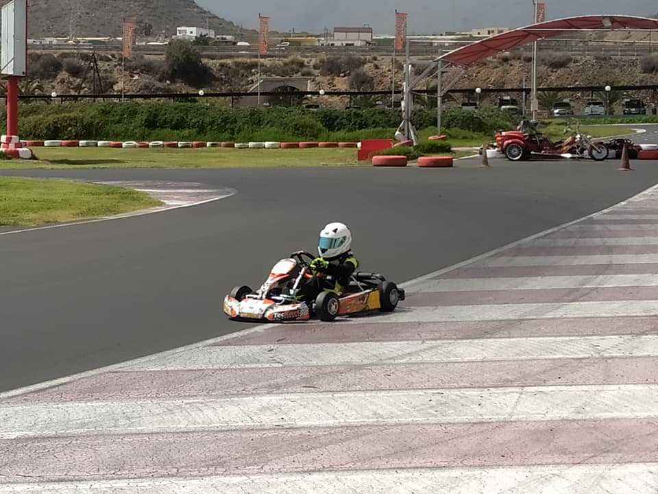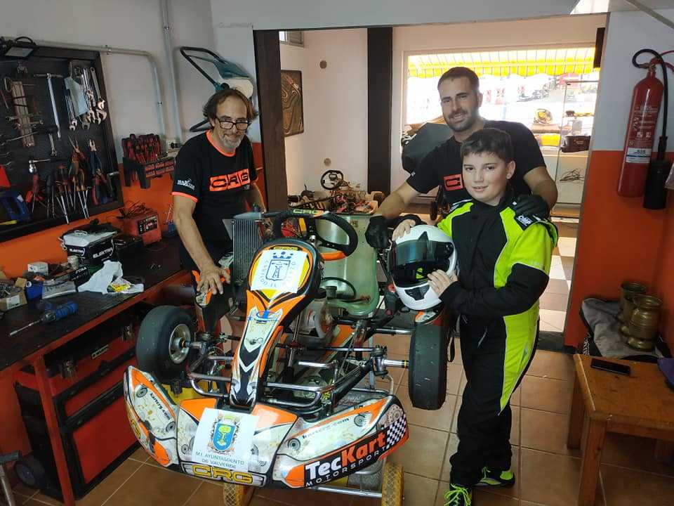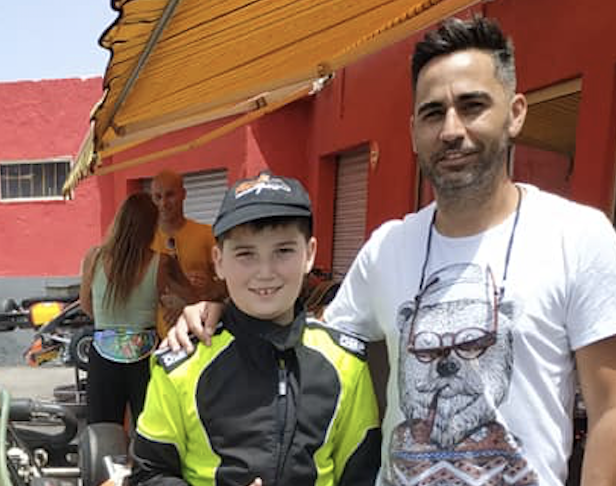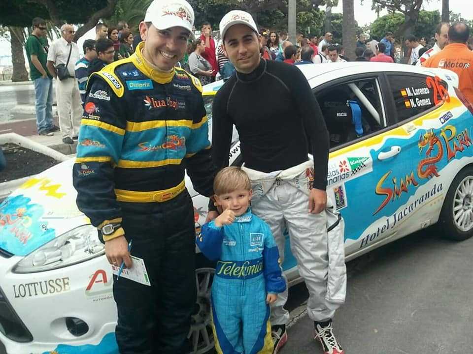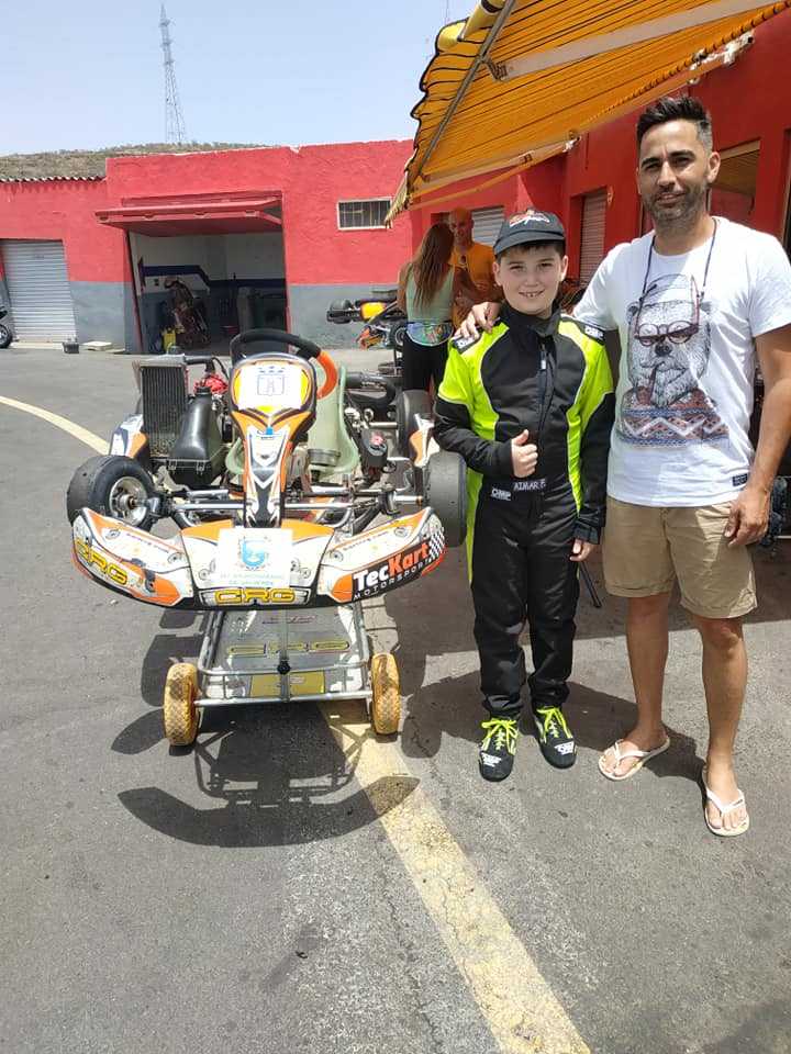El joven piloto herreño Aimar Fariña, una de las jóvenes promesas del karting canario, tiene un importante apoyo, el que le muestra el que fuera campeón de Canarias de Rallys, Marco Lorenzo.