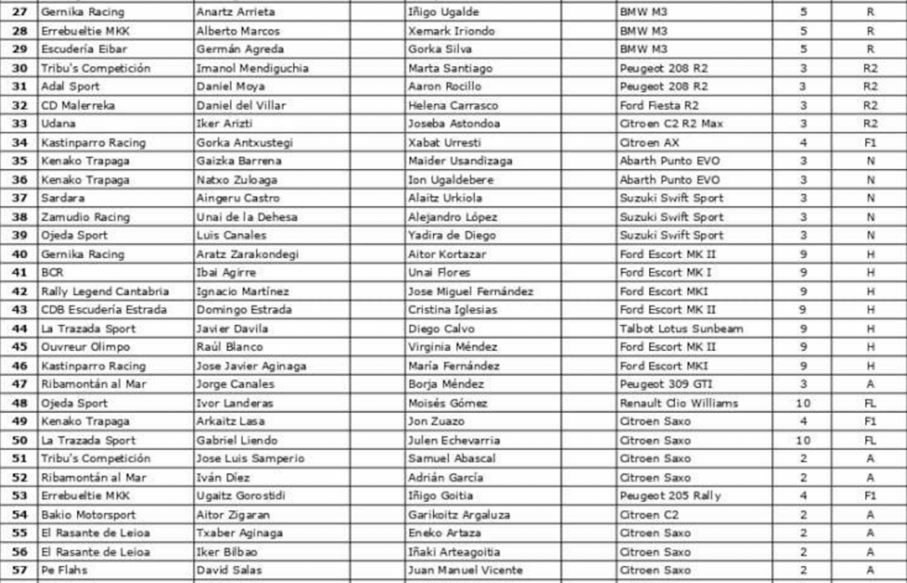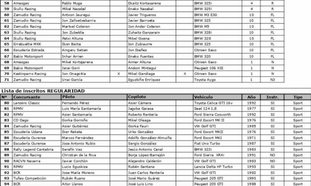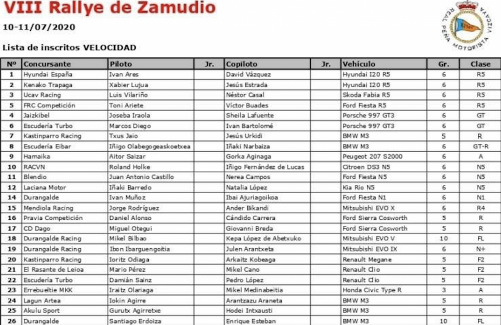 Pero se encontrará con monturas y pilotos que le harán correr, como el caso de Xabier Lujua, con otro Hyundai i20 R5, el Skoda Fabia R5 de Luis Vilariño, el Ford Fiesta R5 de Toni Ariete y los Porsche 997 GT3 de Joseba Iraola y Marcos Diego, entre otros.