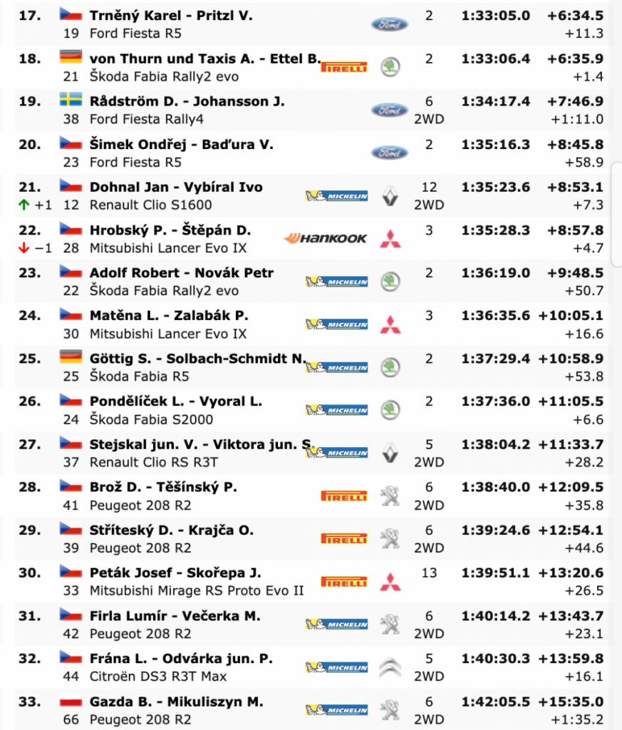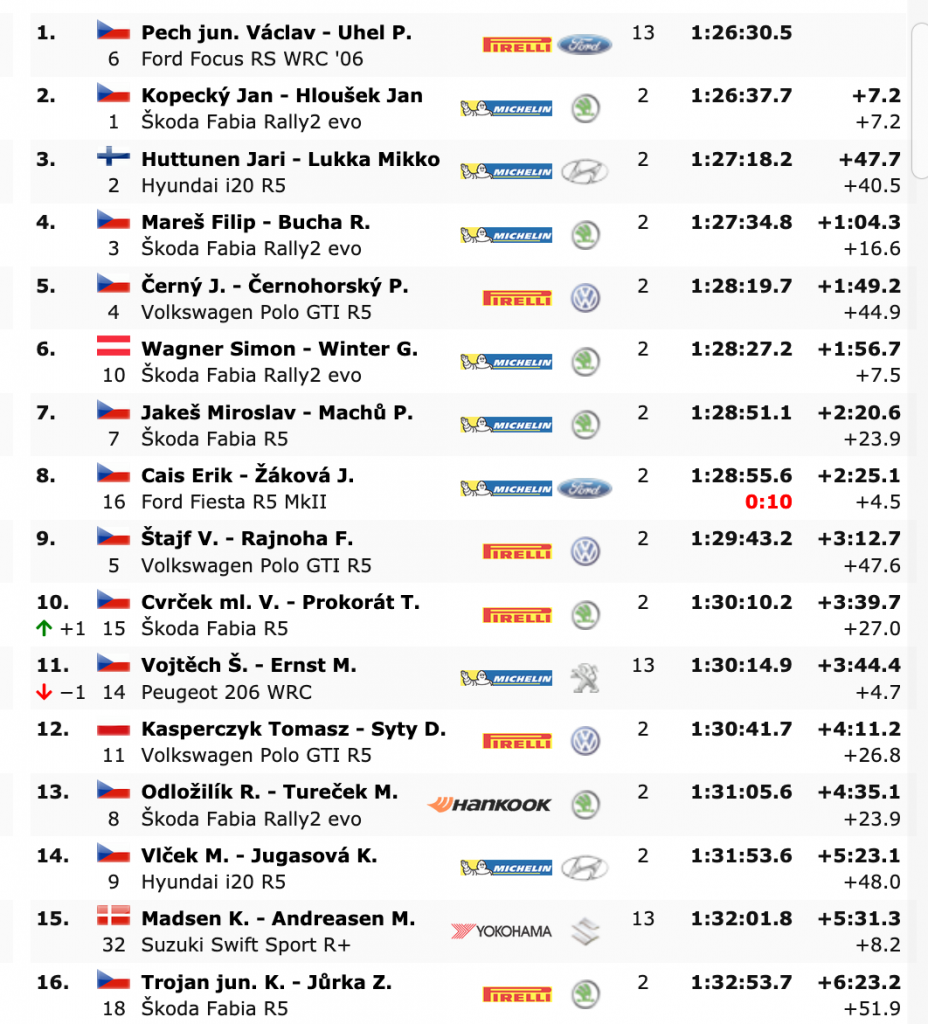 Los checos Pech y Uhel supieron aprovechar su notable superioridad mecánica para superar en sólo 6.4 a sus compatriotas Jan Kopecký y Jan Hloušek (Škoda Fabia Rally2 Evo), que a pesar da darlo todo no pudieron lograr la victoria.