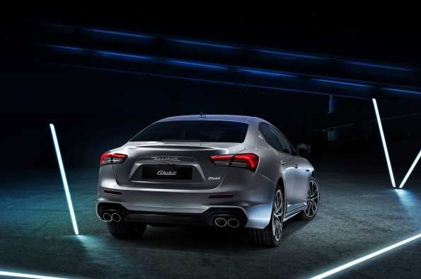 En el exterior, el color azul caracteriza las icónicas branquias o salidas de aire laterales, las pinzas de freno y el rayo en el logo ovalado que encierra el Tridente en el pilar trasero. El mismo color azul reaparece dentro del coche, en particular en las costuras de los asientos. El nuevo Ghibli Hybrid también presenta nuevos contenidos estilísticos, a partir de la nueva parrilla frontal, con barras rediseñadas para representar un diapasón, un dispositivo musical que emite un sonido de extrema pureza y que también evoca el símbolo del Tridente. Hay cambios significativos en la parte trasera del automóvil, donde los grupos de luces se han rediseñado por completo, con un perfil tipo boomerang inspirado en el 3200 GT y el concept car Alfieri.