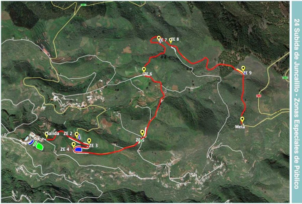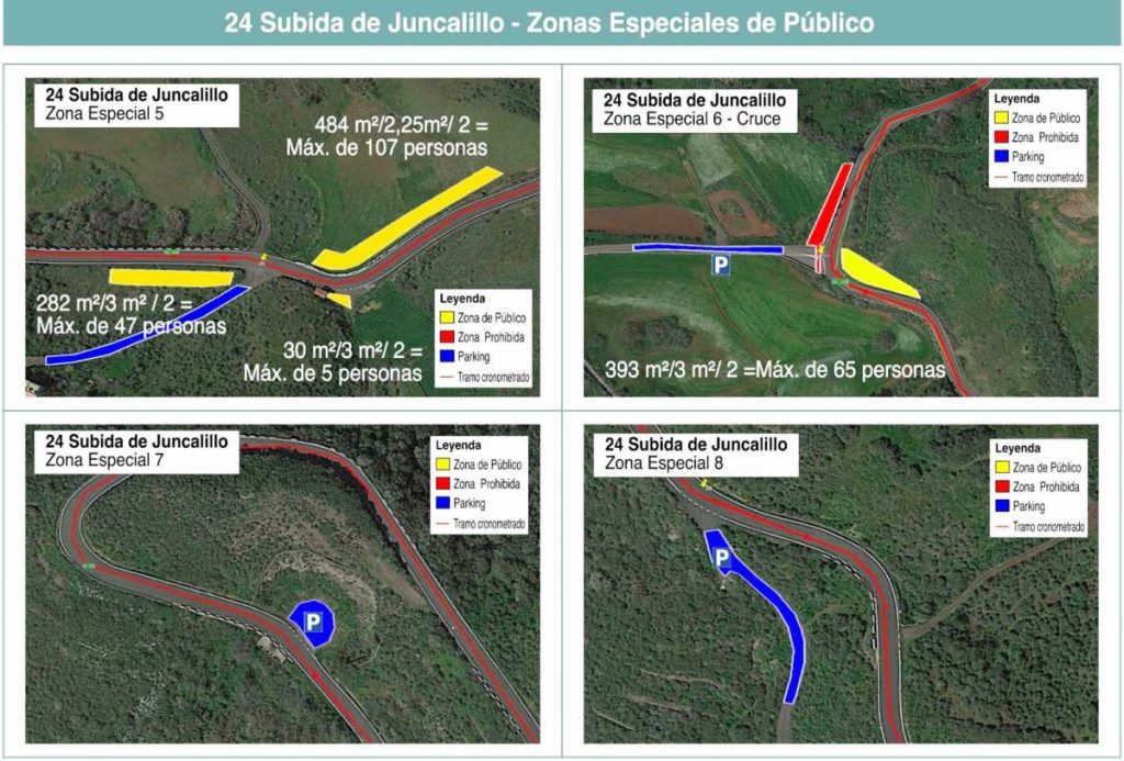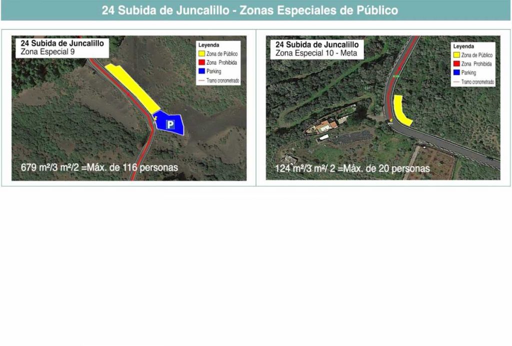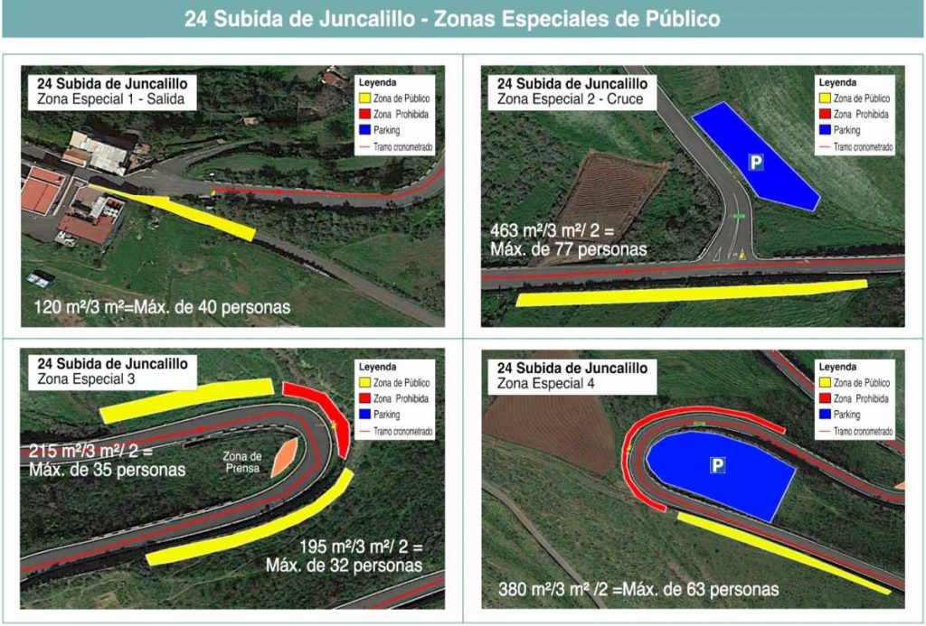 La Escudería Drago ha elaborado una serie de mediciones de aforo máximo en los puntos preferidos por los aficionados a lo largo del recorrido de la Subida de Juncalillo. En estas zonas de público, el aforo tiene que ser respetado y se hará un seguimiento por parte de la organización y por el «Coche de Seguridad» el día de la prueba para que esto se cumpla.