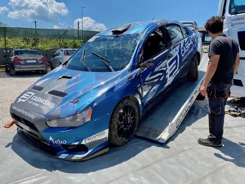 Pero su equipo Prospeed había completado la reparación inicial en el área de servicio cerca de donde se celebraba el test previo a la prueba de apertura del europeo, realizándosele una reparación más completa en el parque de servicio del evento en Fiuggi.