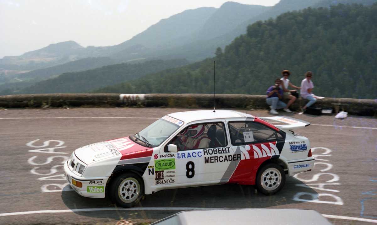 En realidad, este Sierra lo estrenó la señora Mari Sais, esposa del señor Robert Mercader; era su vehículo particular, el que usaba en el día a día. El año 1990, con el apoyo de la empresa Robert Mercader y del RACC, Jordi Ventura tenía la intención de participar en el Campeonato de España de Rallys con un Ford Sierra RS Cosworth alquilado a Sport Garage, preparador francés situado en Saint-Étienne, pero todo cambió nada más empezar la temporada. Jordi Ventura lo explica…