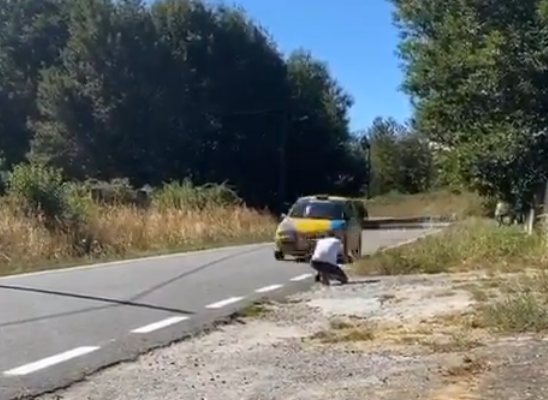 Nos topamos con un tuit de Ferrán Ferrero donde se observa a un ‘aficionado’, por llamarlo de una manera respetuosa, intentando sacar una foto tan cerca que casi es golpeado por el vehículo de competición.