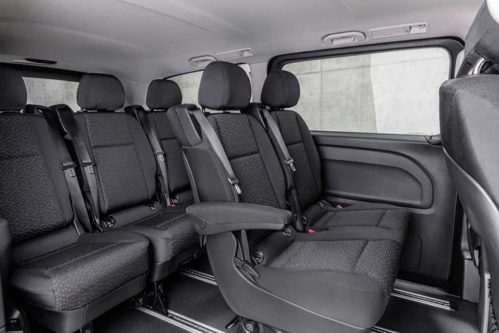 La instalación de la batería en el espacio debajo del piso garantiza el mayor espacio posible dentro del habitáculo ofreciendo la misma habitabilidad y funcionalidad que la Vito Tourer. Disponible en dos longitudes de carrocería (5.140 mmm y 5.370 mm), la flexible instalación de distintos tipos asientos permiten que la eVito Tourer se convierta en un vehículo de hasta nueve plazas y seguir contando con un amplio maletero, la perfecta combinación para el servicio de taxi y transfer profesional.