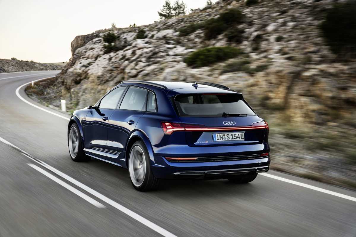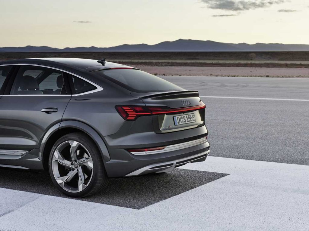 Tanto el Audi e-tron S como el Audi e-tron S Sportback evidencian su potencia eléctrica a primera vista. Los paragolpes delanteros y traseros cuentan con contornos pronunciados, mientras que las entradas de aire son particularmente grandes y con un llamativo diseño. La inserción en el difusor trasero se extiende casi a lo largo de toda la anchura del vehículo. Los pasos de rueda ensanchados 23 milímetros a cada lado contribuyen a la apariencia deportiva. Las molduras plateadas en la parte delantera y en la trasera, así como las carcasas de los espejos retrovisores de aluminio, son características propias de los modelos S. De forma opcional se puede solicitar un acabado con color de contraste que se aplica a gran parte de la sección inferior de la carrocería.