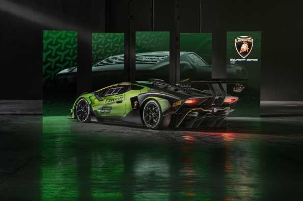 La aerodinámica es fruto de la experiencia de Lamborghini Squadra Corse en las competiciones de GT y garantiza un nivel de eficiencia y carga aerodinámica superior a los de un GT3, con un valor de 1.200 kg a 250 km/h.