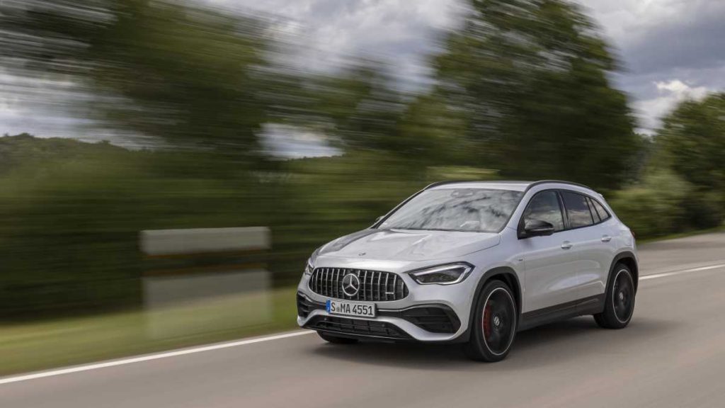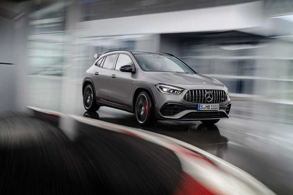 Ya se ha completado el elenco de modelos compactos 35, que constituyen para muchos clientes el acceso al mundo de Mercedes-AMG. Esta familia de automóviles deportivos, formada por siete miembros, se extiende desde la Clase A —tanto con carrocería de tres volúmenes como con carrocería fastback (para China en versión larga)— y el CLA Coupé y Shooting Brake hasta el GLB con siete plazas de asiento, y se completa ahora con el nuevo GLA 35 4MATIC (consumo de combustible en el ciclo mixto 7,5-7,4 l/100 km; emisiones de CO2 en el ciclo mixto 171-170 g/km)[1]. La base técnica del vehículo se ha acreditado en numerosos modelos. El motor sobrealimentado de cuatro cilindros y 2,0 litros se distingue por su agilidad y su capacidad de aceleración. Entrega 225 kW (306 CV), que se distribuyen de forma variable entre las cuatro ruedas a través de un cambio de doble embrague de 8 marchas y el sistema de tracción integral. Las dinámicas prestaciones (aceleración de 0-100 km/h en 5,2 segundos) y la experiencia de conducción con altas prestaciones se dirigen a un grupo objetivo amante de los vehículos deportivos y de diseño moderno.