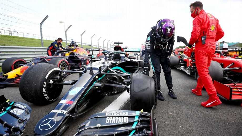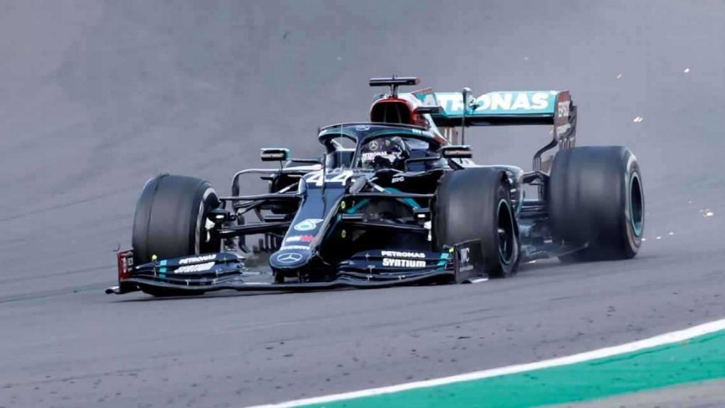 Ante la situación del Mercedes número 77, Red Bull llamó a boxes a Max Verstappen para cambio de neumáticos y en la última vuelta, la gran sorpresa fue la rotura del mismo neumático en el auto de Lewis Hamilton.