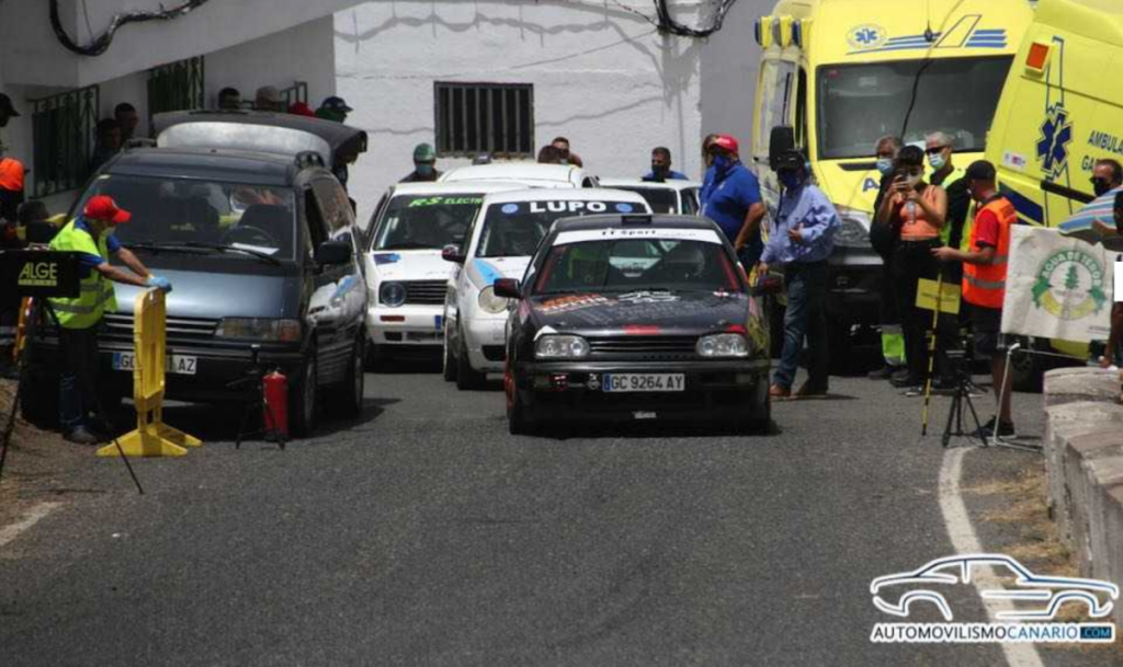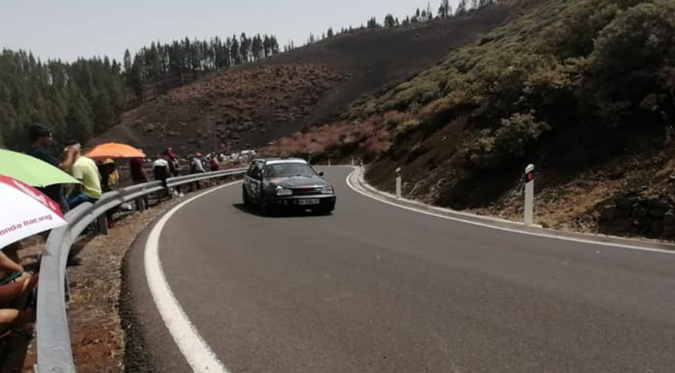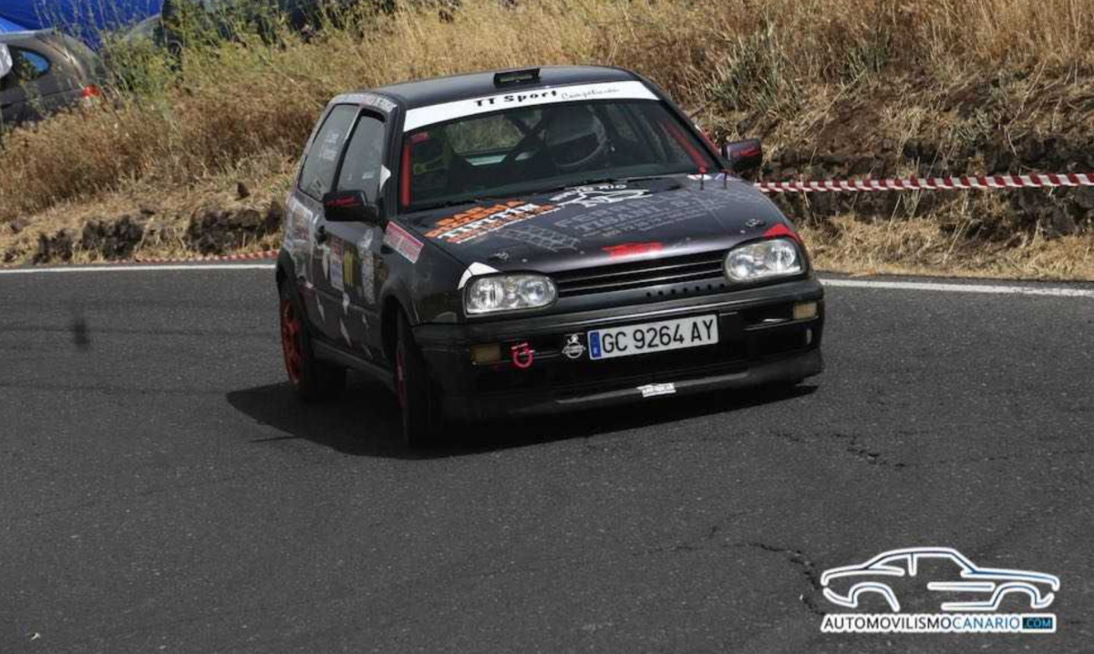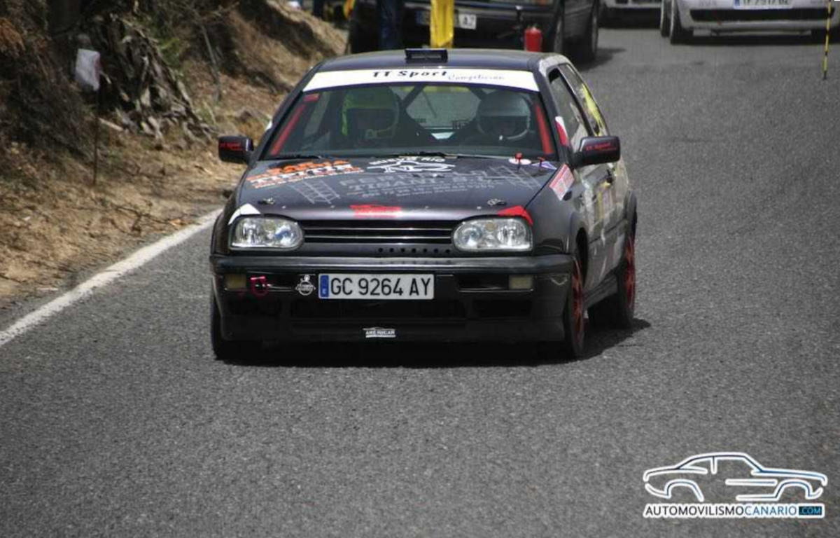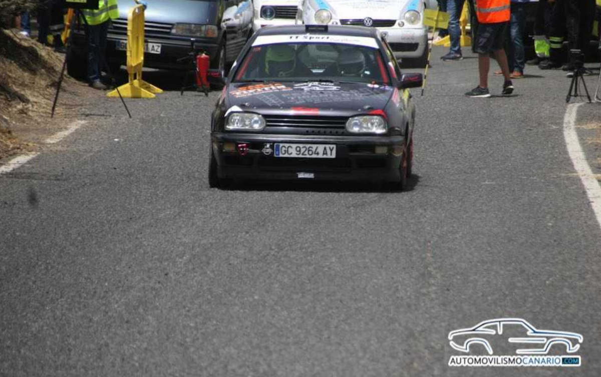 Sara López y Christopher Arencibia (VW Golf GTI), del equipo TT Sport Competición, da las gracias a todo los que le apoyaron tras que un problema mecánico les impidió poder terminar la Subida de Juncalillo (Gran Canaria).
