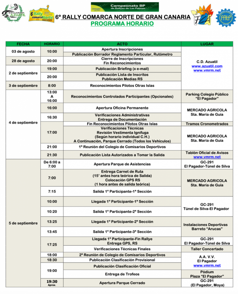 El comité organizador del sexto Rallye Comarca Norte de Gran Canaria ha notificado que ha modificado el programa horario de la cita del Provincial de Las Palmas de Rallys de Asfalto 2020.