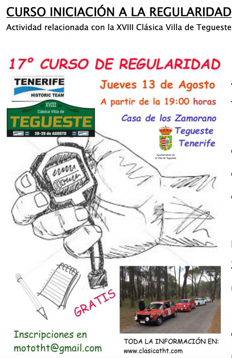 Animamos a los aficionados que dispongan de un vehículo de más de 25 años a que se inscriban en el curso y posteriormente prueben en la Clásica de Tegueste en cualquiera de sus dos modalidades.