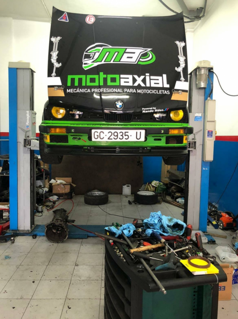 Poco falta para bajar al #BMW325i #E30 del elevador, que Juanfra agarre el volante, Rubén las notas y vernos en el TC1 – San Lorenzo del #RIGC.