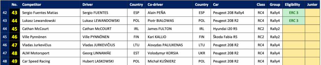 -De los 48 coches, 42 (87.5%) están registrados para el Campeonato Europeo de Rally de la FIA.