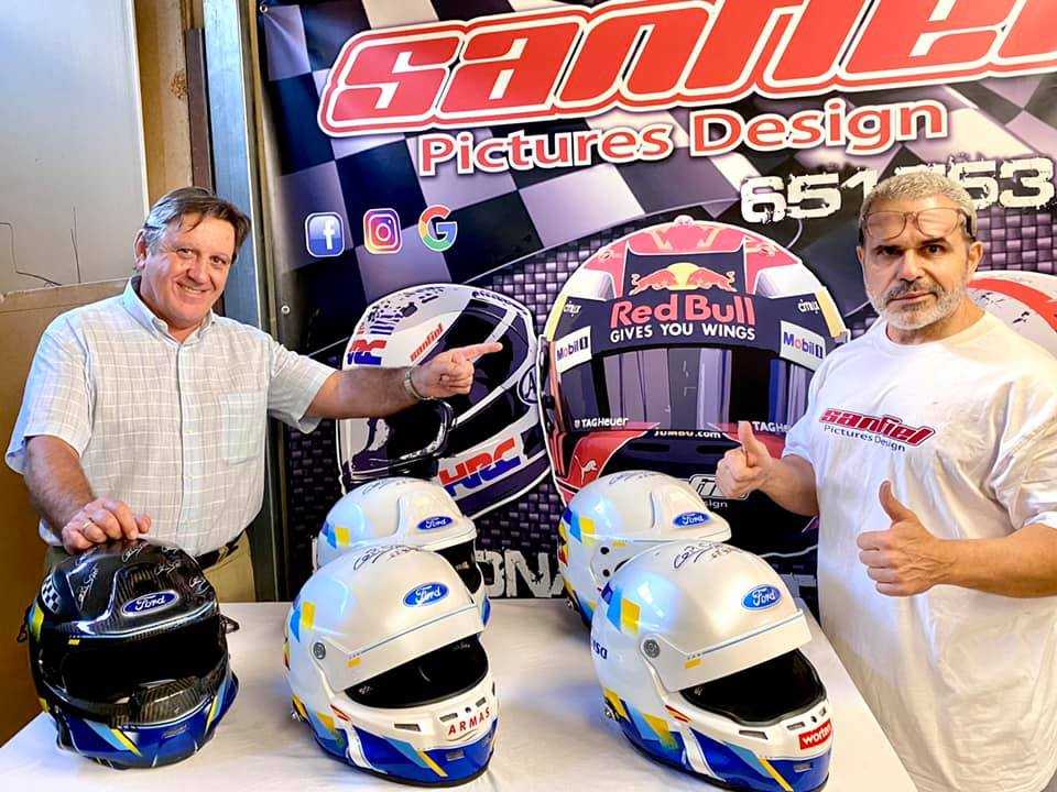 Quiero agradecer personalmente el gran trabajo realizado por Aerografia Sanfiel Perez, y en particular el cariño que le ha echado el amigo Paco a los cascos de nuestros pilotos Ford. Archiauto S.A (Islas Canarias)