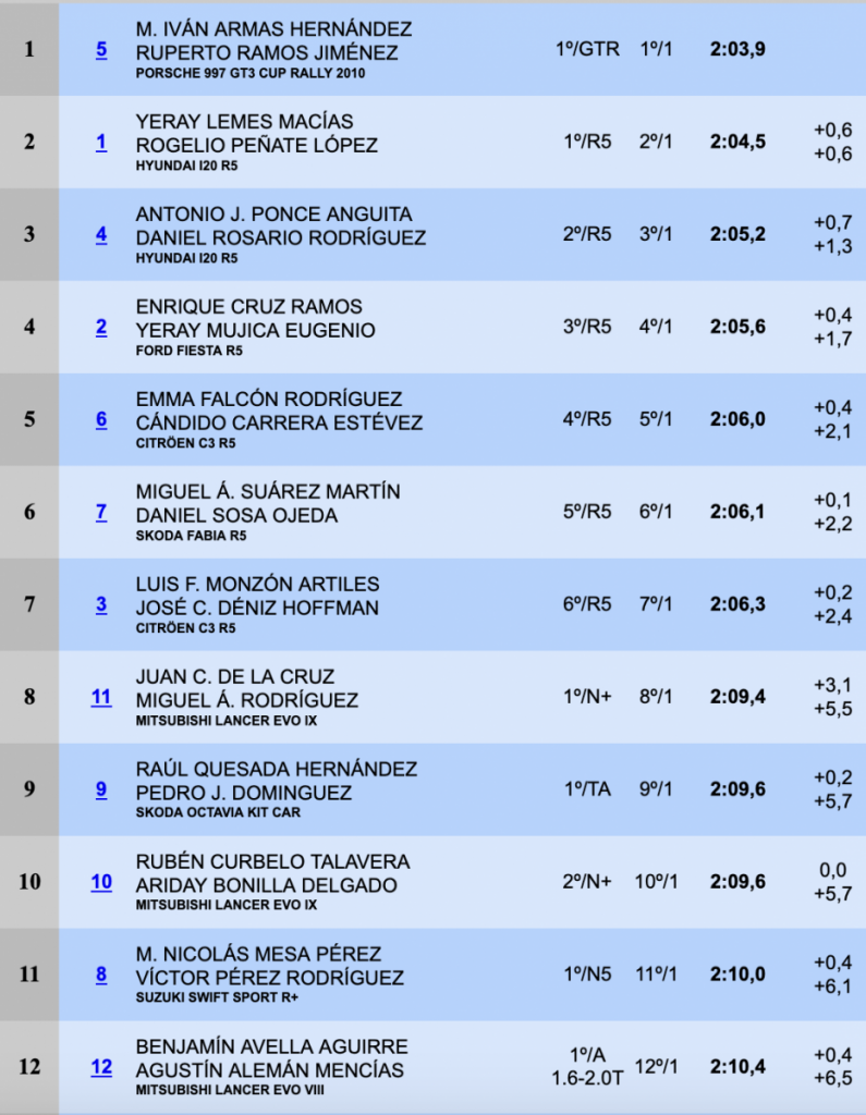 En esta primera toma de contacto y teniendo en cuenta que el tramo de San Lorenzo será seguro el de más concentración de público, la organización de la Escudería Maspalomas está satisfecha del comportamiento en temas de seguridad y especialmente con el uso unánime de la mascarilla. Por lo que es de esperar que en los tramos de mañana se cumpla todavía más el protocolo anti-covid, ya que los aficionados podrán distribuirse en más kilómetros a lo largo de los tramos.