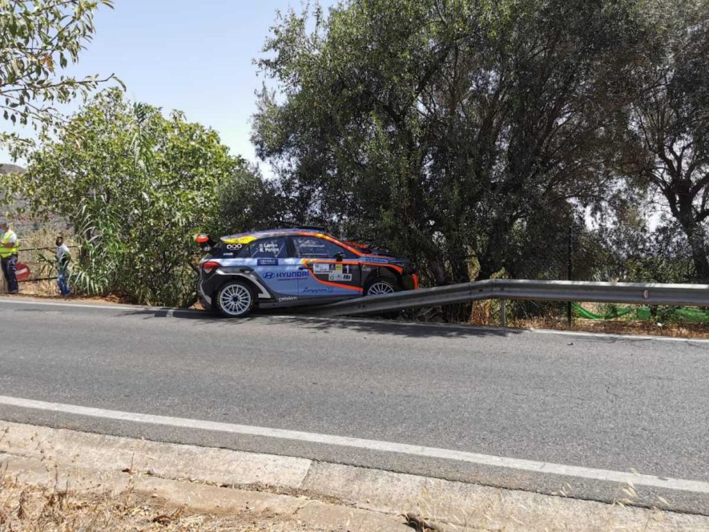 Yeray Lemes y Rogelio Peñate han tenido una salida de carretera cuando estaban liderando el Rally. Estaban teniendo una lucha encarnizada con Enrique Cruz. Han cometido un error que no suele ser usual en el equipo, comienza el campeonato de Canarias con esta salida de carretera y abandono, algo poco usual para el piloto lanzaroteño.