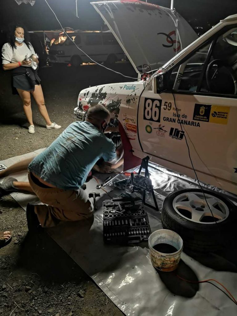 Venir a ver el Rally Isla de Gran Canaria, ver mi antiguo coche, pasar por la asistencia y me comentan que tiene un problema llegando a la meta del primer tramo. Y el ‘jodido este’ me hace trabajar hasta las tantas 😅😅