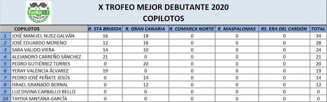 Javier Peñate y José Manuel Nuez (Nissan Micra 160 SR) afrontaron en el Rally Isla de Gran Canaria su segunda carrera, logrando buenos tiempos, aunque una penalización les lastró en la general. A pesar de ellos, ambos salen liderando el apartado de piloto y copilotos del X Trofeo Mejor Debutante.