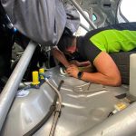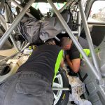 Tras llegar a asistencias, los mecánicos del equipo deciden ponerse a localizar la avería para que podamos continuar, realizándolo en tiempo récord y pudiendo reengancharnos para seguir compitiendo.