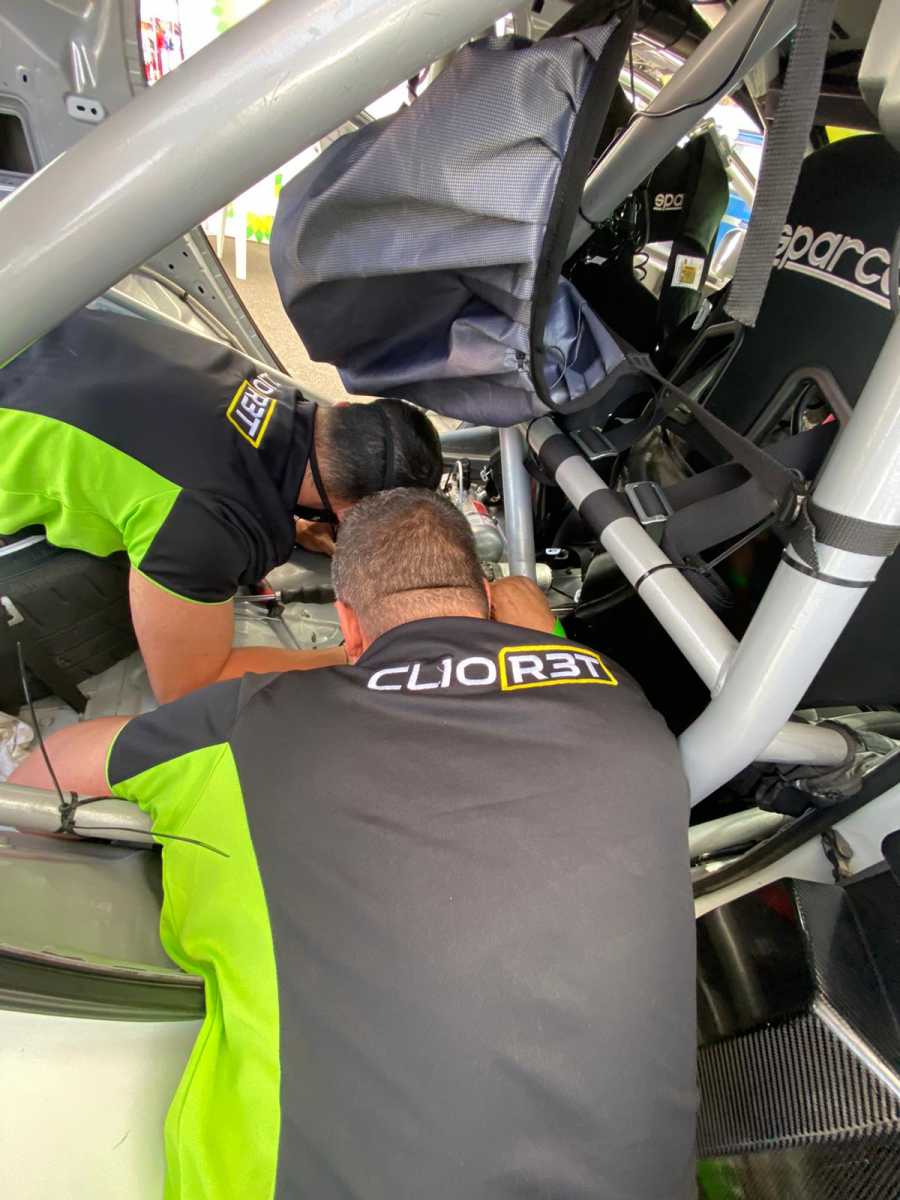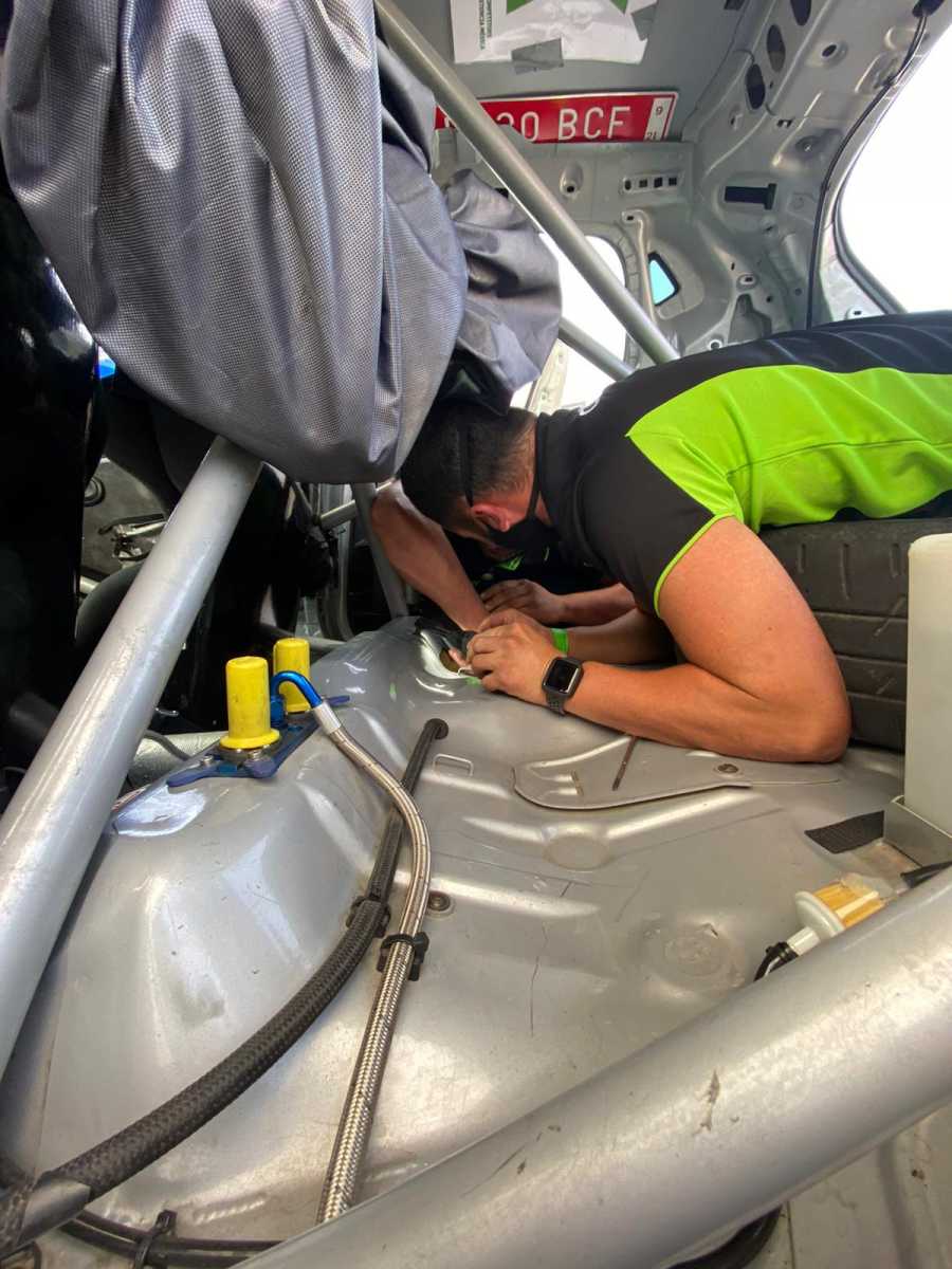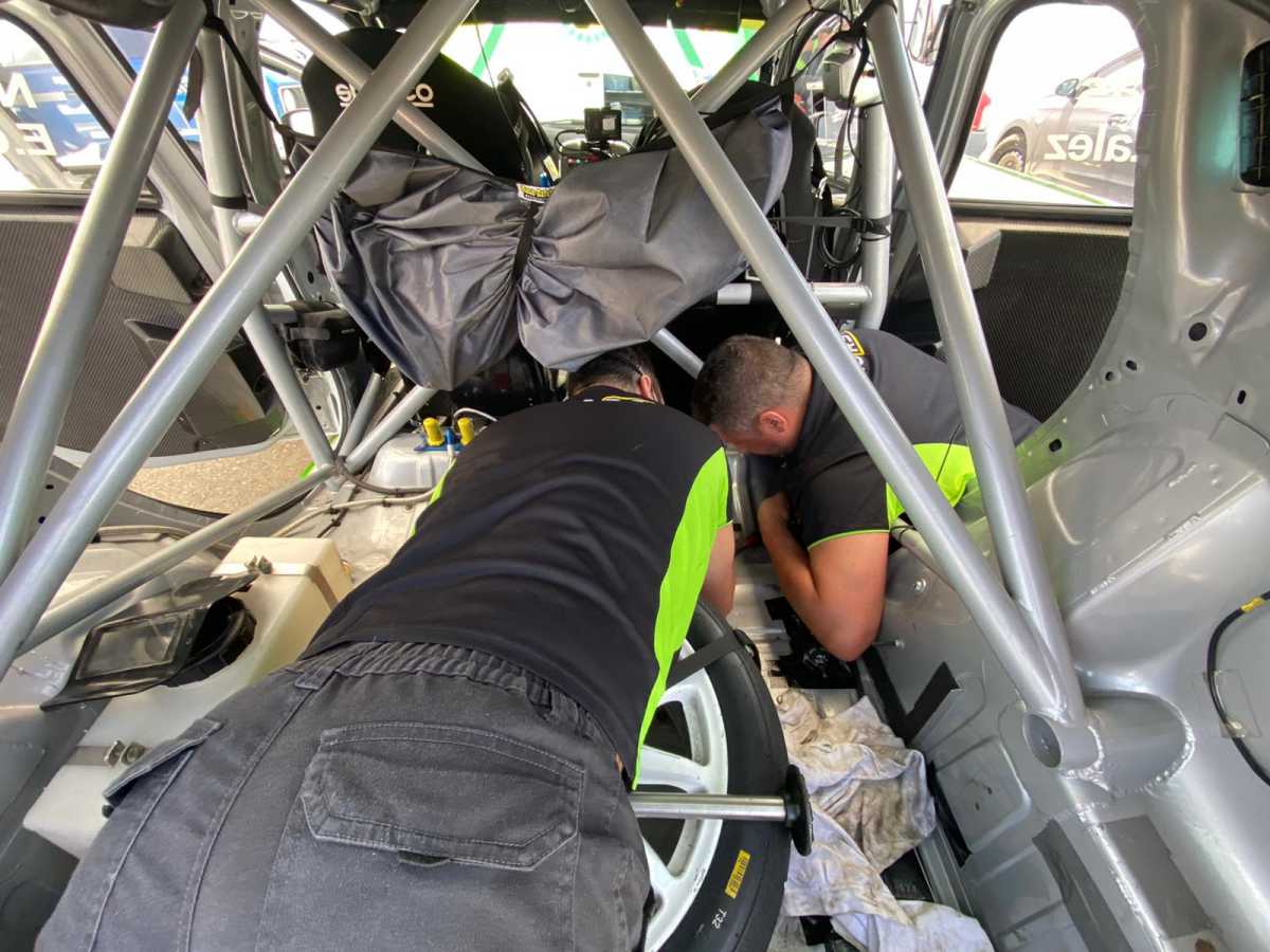 Tras llegar a asistencias, los mecánicos del equipo deciden ponerse a localizar la avería para que podamos continuar, realizándolo en tiempo récord y pudiendo reengancharnos para seguir compitiendo.