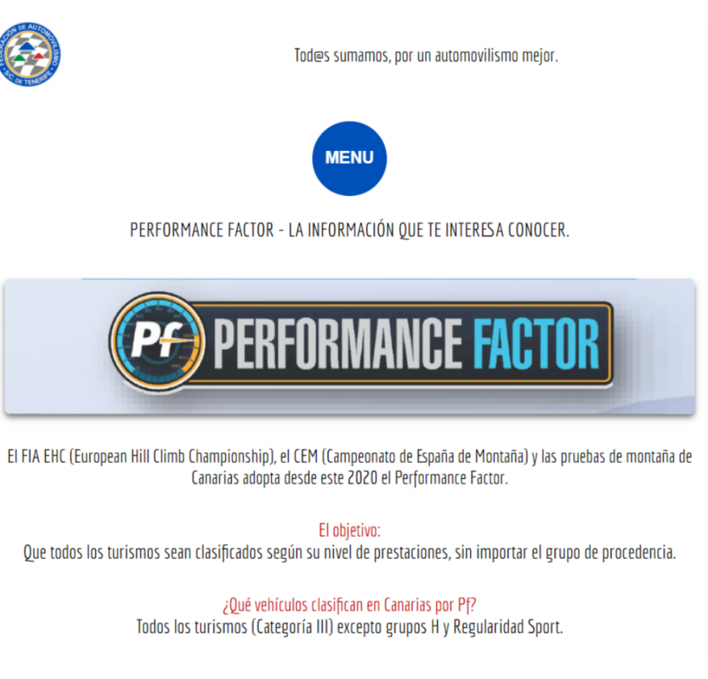 Recuerda que de cara a la Subida a Güímar es imprescindible haber obtenido el valor del Performance Factor de tu vehículo para a continuación añadirlo en tu ficha de piloto de la FIASCT.