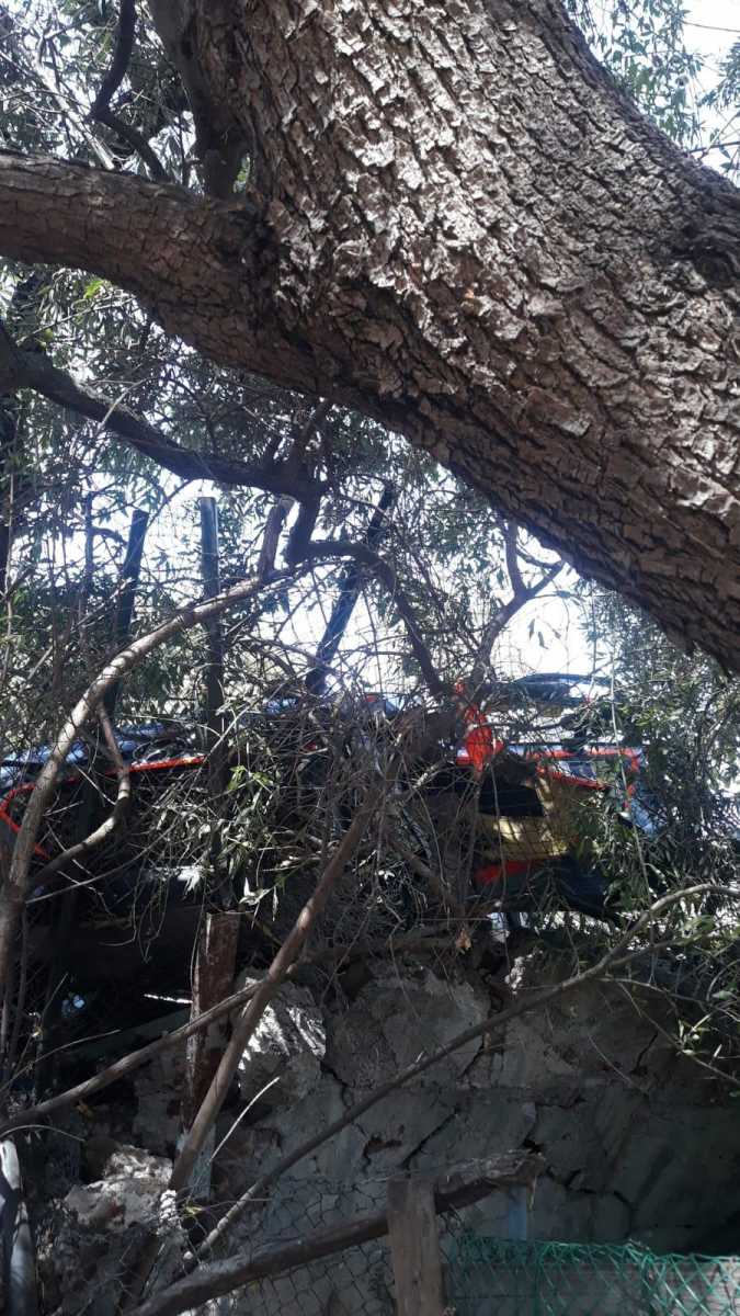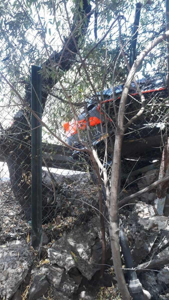 El coche tiene el lateral izquierdo entero dañado tras golpear contra el muro, ya que el impacto fue frontal y lo paró un árbol, por lo que quedó dañado todo el frontal, los radiadores, la mangueta, el buje, los tirantes, los grados, amortiguadores, el palier, el parachoques, los guardabarros, el zócalo lateral, el puente entero, la caja, la dirección entera, partida en dos elevan el coste a cerca de los 35.000 euros… Por eso decimos que la pérdida del liderato es lo menos importante en esta ecuación.