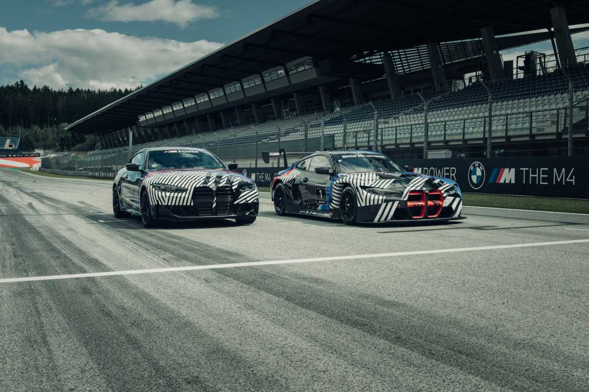 World premiere en el Red Bull Ring: por primera vez, BMW M GmbH presenta sus dos iconos diseñados para la carretera y el circuito uno al lado del otro, los prototipos del nuevo BMW M4 Coupé (consumo de combustible combinado: 10,9 – 10,5 l / 100 km *; emisiones de CO2 combinadas: 249-239 g / km *, cifras provisionales) y el nuevo BMW M4 GT3. Eld día previo al “BMW M Grand Prix of Styria” de MotoGP, los dos vehículos se presentaron con un camuflaje diseñado específicamente para este propósito, ya que su diseño final no se revelará hasta una fecha posterior.