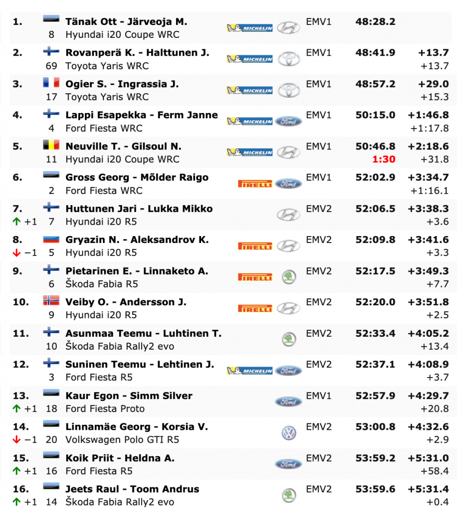 Si el estonio rodó con un ritmo realmente impresionante este domingo, lo que le valió para superar a Kalle Rovanperä en 13.7, segundo y mejor piloto de Toyota, el joven piloto también lo fue. Al final, el prometedor finlandés dominó claramente a sus compañeros de equipo, superando a Sébastien Ogier en 15.3, que se vio ralentizado por su posición como piloto que abría la carretera en la mañana del domingo, aunque causó una buena impresión para el encuentro de Estonia, que será la cita del Mundial de Rallys.