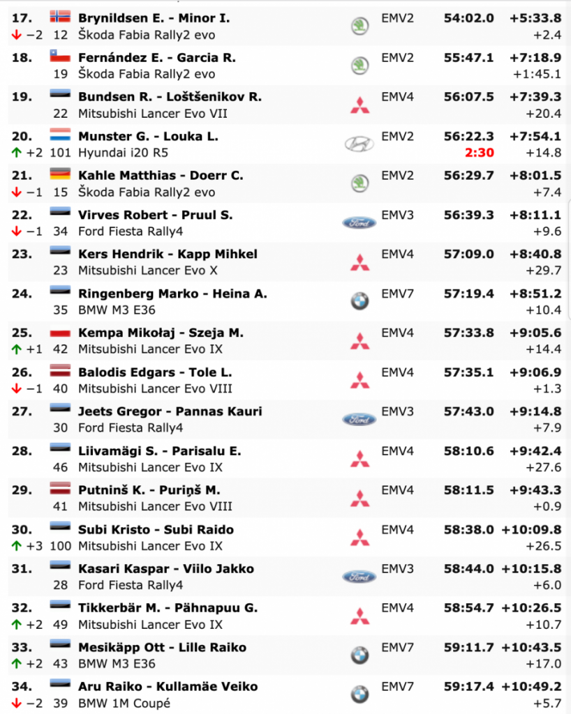 Entre los R5, Jari Huttunen se impuso con un gran tiempo en la etapa final, ganando por delante de Nikolay Gryazin por 3.3. En esta categoría, Teemu Suninen estaba al volante de un Ford Fiesta de primera generación.